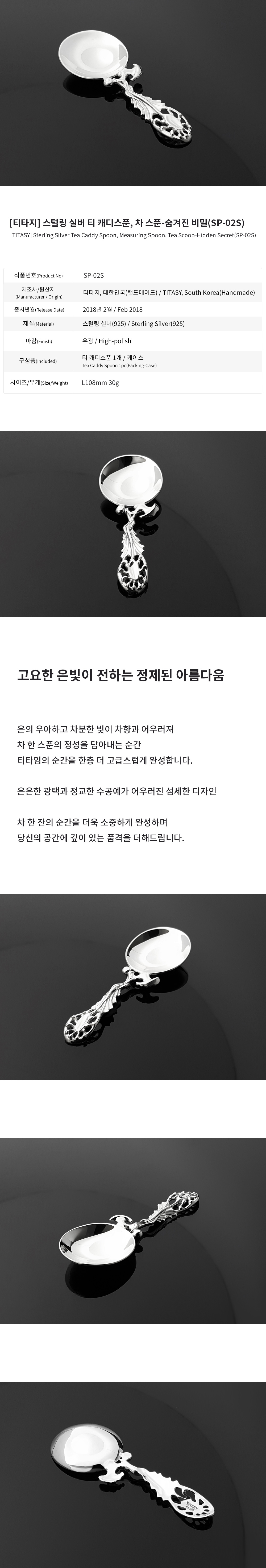 스털링 실버 티 캐디스푼, 차 스푼-숨겨진 비밀(SP-02S)
