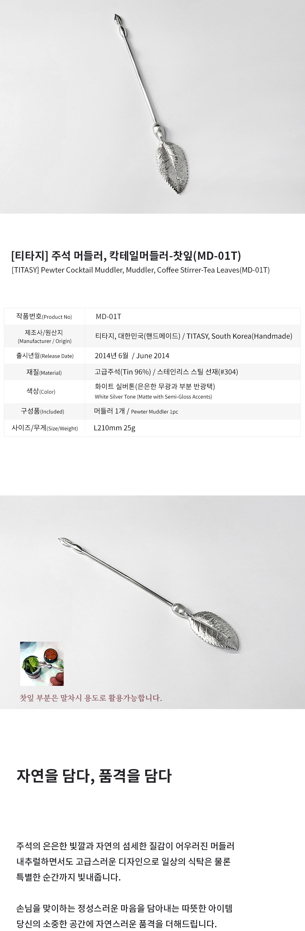 > 주석 머들러, 칵테일머들러-찻잎(MD-01T)